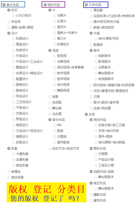 您的版权 登记了吗?常见的版权 分类目